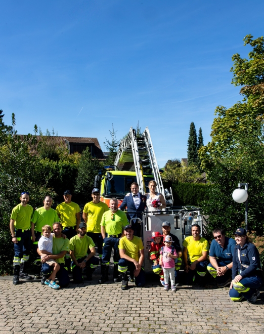 Nach der Rückkehr auf festen Boden wurden Matthias und Michéle herzlich von Familie, Freunden und Feuerwehrkameraden empfangen, bevor es gemeinsam zum Apéro in die Fernegg Schönenberg ging.