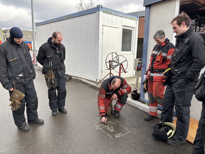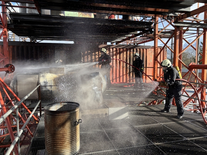 Damit wir den Umgang mit echtem Feuer trainieren können, fahren wir alle paar Jahre nach Andelfingen ins kantonale Ausbildungszentrum der GVZ. An zwei verschiedenen Objekten werden den ganzen Tag lang verschiedene Szenarien durchgespielt. Die Rollen der Übungsteilnehmer wechseln dabei immer wieder, so dass jeder unterschiedliche Einblicke erhält und möglichst viele Erfahrungen für den Ernstfall sammeln kann.